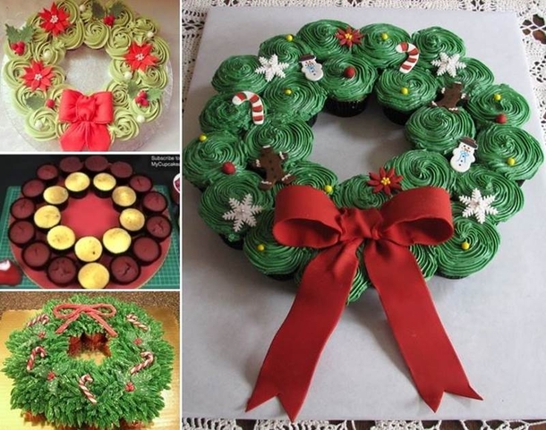 #How To Make A Christmas Cupcake Wreath, #holiday wreath cake, #A Round up of Our Christmas Winter Tutorials! My Cake School.